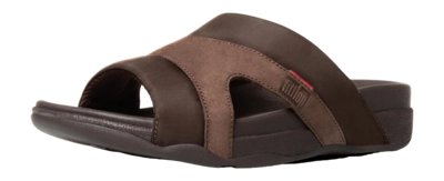 Deze stijlvolle, eenvoudige herensandaal van het bekende merk FitFlop is van een uitstekende kwaliteit. De sandaal is gemakkelijk te combineren met verschillende outfits, omdat deze een effen kleur heeft. Het textiel van de sandaal voelt prettig aan op uw voeten en is erg zacht. De speciale ergonomische zool van de sandalen werkt schokdempend, waardoor de sandalen heerlijk comfortabel aanvoelen. Uw lichaamsgewicht wordt verdeeld over het gehele voetoppervlak, waardoor pijn in uw voeten tijdens het wandelen voorkomen wordt. Deze comfortabele sandalen kunnen niet ontbreken in uw zomergarderobe!